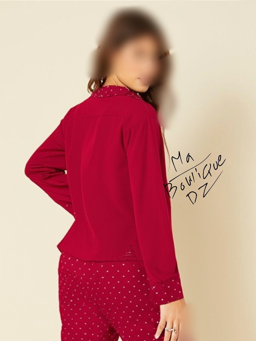 بيجامة نسائية راقية مستوردة من تركيا، مصنوعة من خامات ممتازة توفر راحة وأناقة في آن واحد. تتكوّن من قميص بأزرار أمامية بتصميم أنيق مع ياقة وتفاصيل تضيف لمسة عصرية، وسروال طويل يمنحك مظهرًا أنحف وأكثر انسيابية. مثالية للاسترخاء في المنزل بأناقة وجودة عالية.