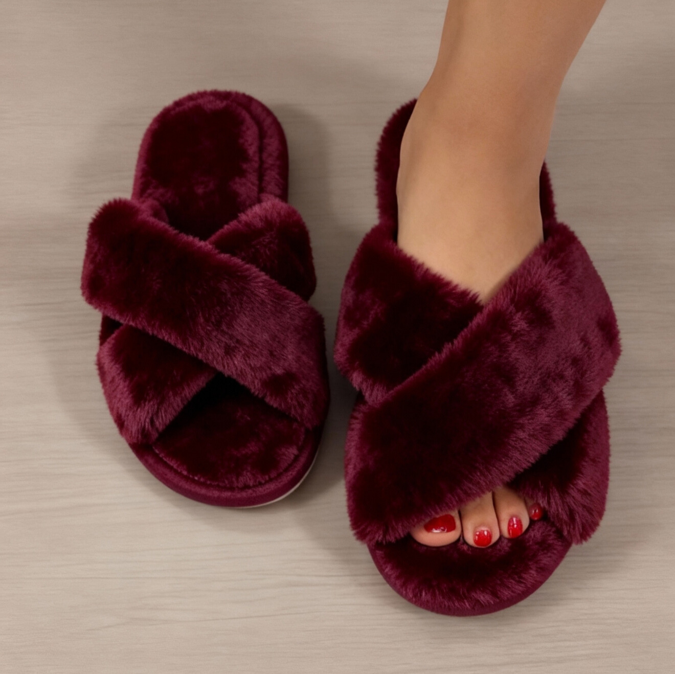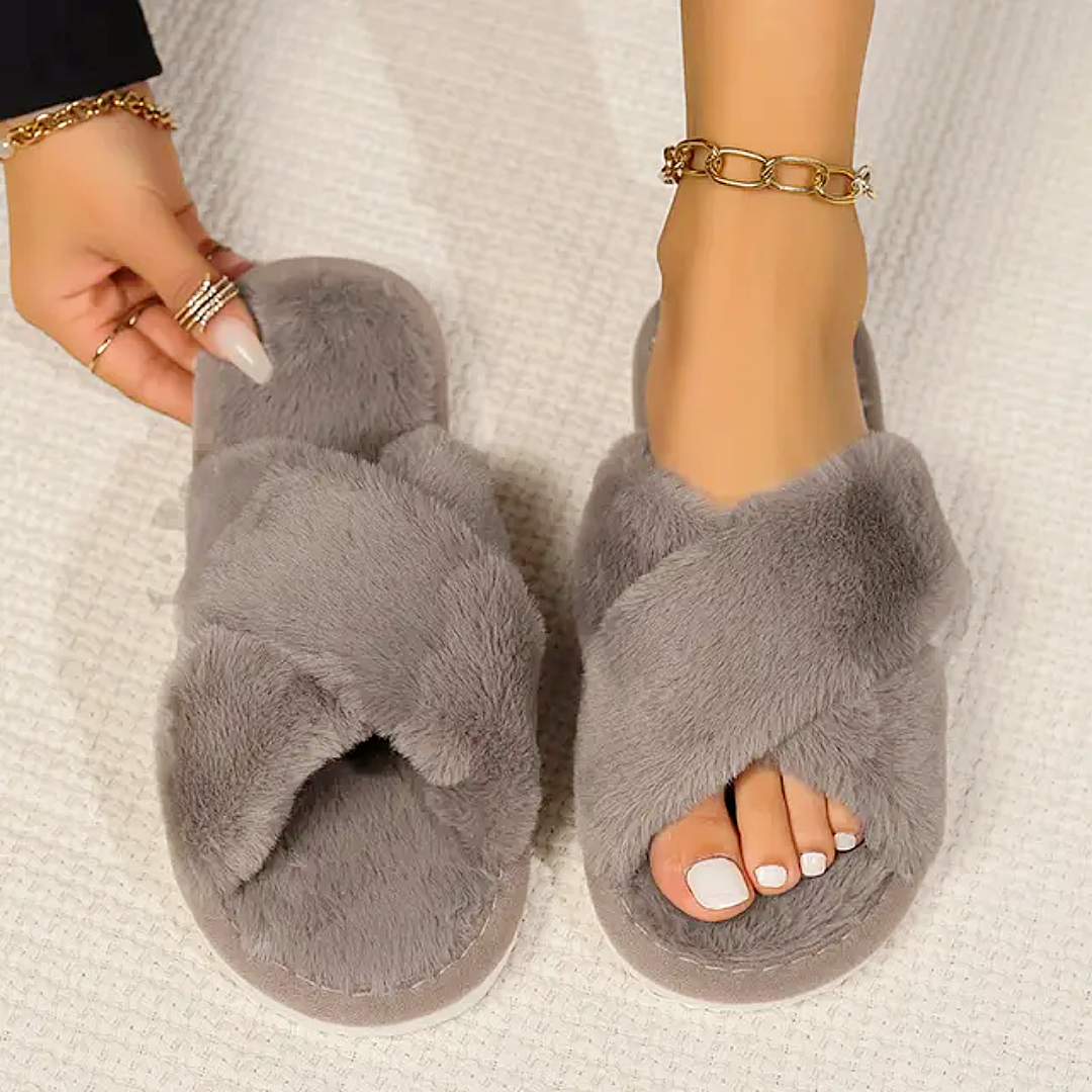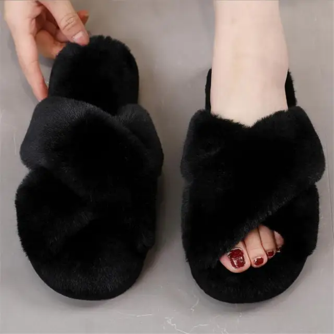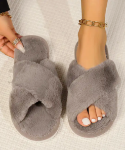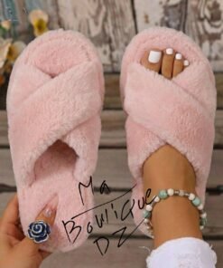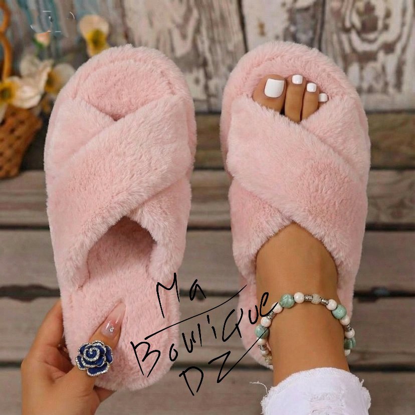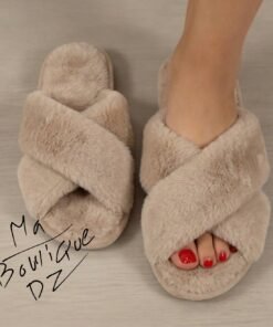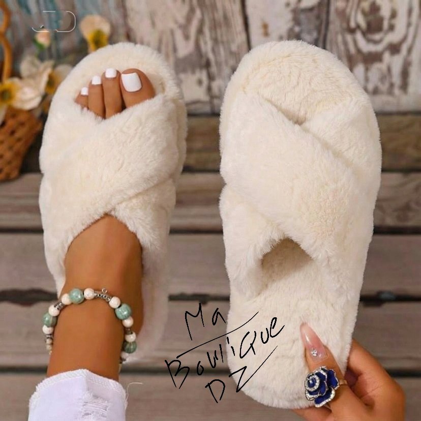 نعال منزلية فاخرة بتصميم ناعم ومريح، مصنوعة من خامة فرو صناعي فائق النعومة يمنح القدمين دفئًا وشعورًا لا مثيل له بالراحة.