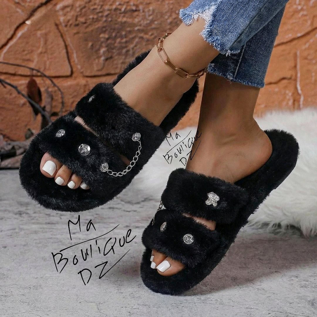 نعال منزلية فاخرة بتصميم ناعم ومريح، مصنوعة من خامة فرو صناعي فائق النعومة يمنح القدمين دفئًا وشعورًا لا مثيل له بالراحة.