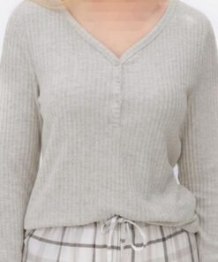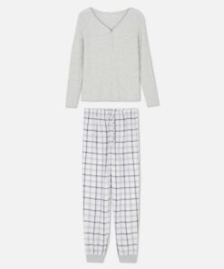 مع الجزء السفلي من البيجامة المصنوع من الفلانل والجزء العلوي من البيجامة المضلع المزود بأزرار، تعد مجموعة النوم ذات الأكمام الطويلة هذه قطعة مريحة لا غنى عنها!