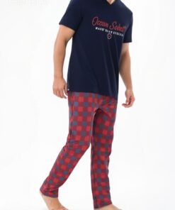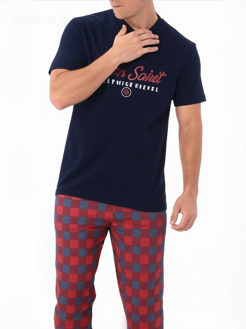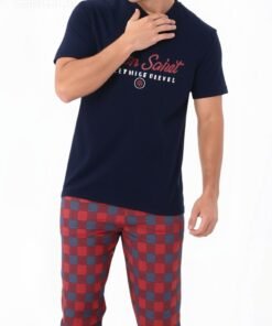 بيجاما رجالية مريحة بتصميم عصري، تتكوّن من تي-شيرت بأكمام قصيرة وبنطال بقَصّة مريحة تمنح حرية الحركة. مصنوعة من قطن 100٪ ناعم على البشرة، مثالية للنوم والراحة اليومية. صناعة تركية بجودة عالية وتشطيب متقن.