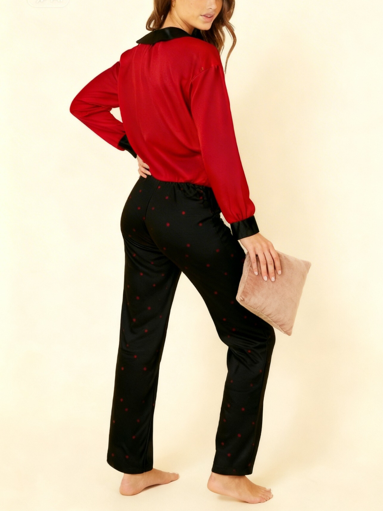 بيجامات نسائية فاخرة، مستوردة من تركيا ومصنوعة من أجود الخامات التي تجمع بين الراحة والأناقة. تتضمن المجموعة بلوزة أنيقة بأزرار وياقة وتفاصيل عصرية، بالإضافة إلى بنطال طويل يُبرز جمال القوام. مثالية للاسترخاء في المنزل بأناقة وراحة.