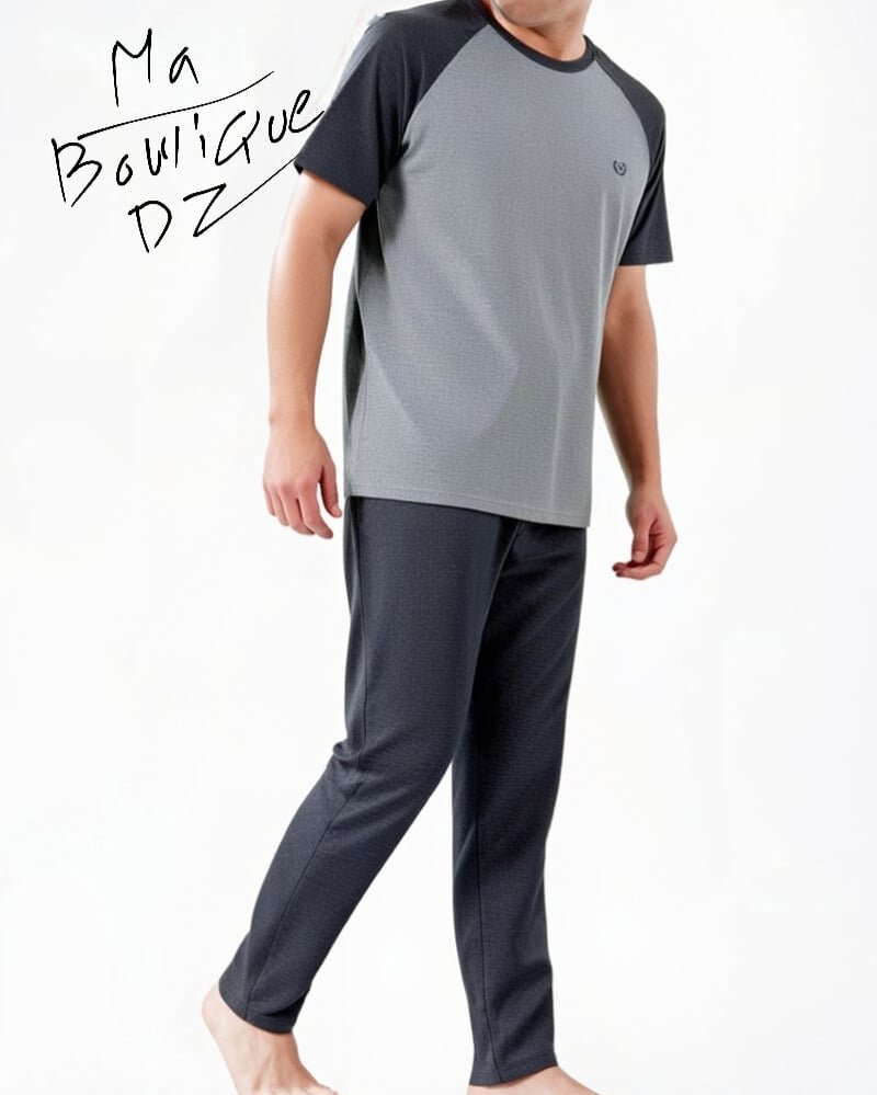 بيجاما رجالية مريحة بتصميم عصري، تتكوّن من تي-شيرت بأكمام قصيرة وبنطال بقَصّة مريحة تمنح حرية الحركة. مصنوعة من قماش ناعم على البشرة، مثالية للنوم والراحة اليومية. صناعة تركية بجودة عالية وتشطيب متقن.