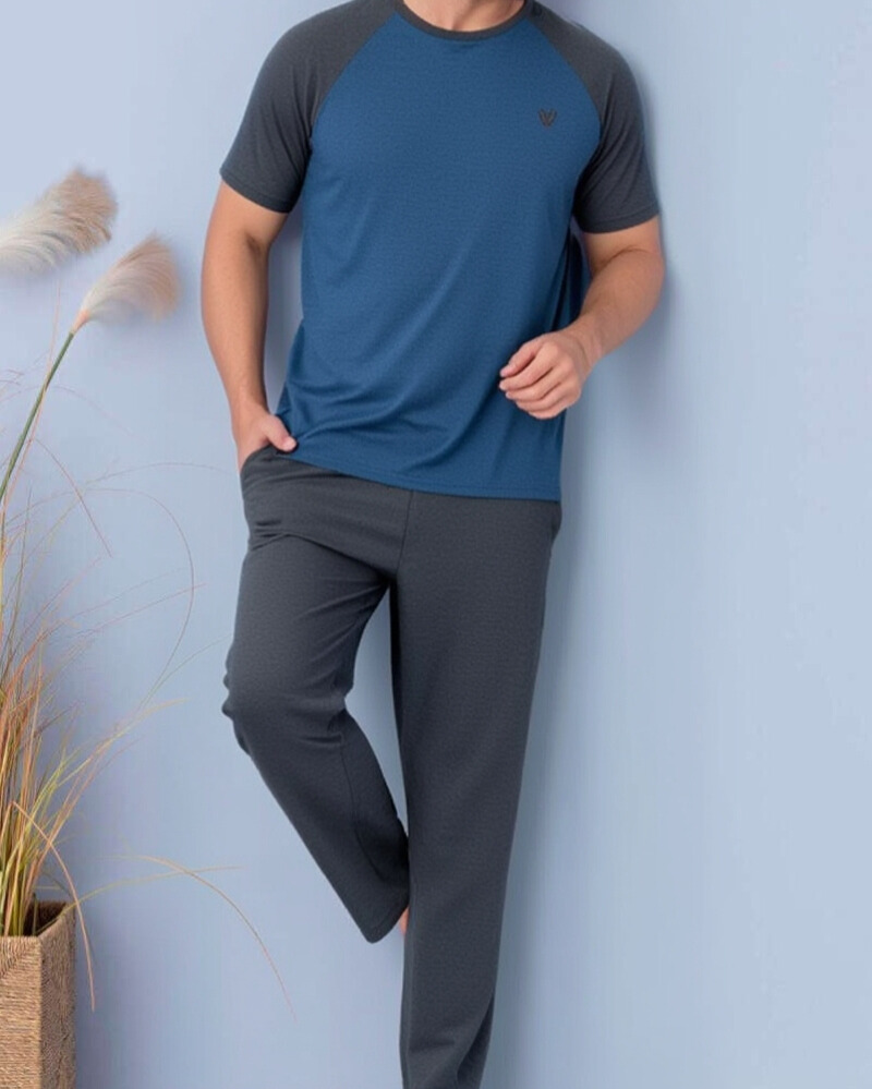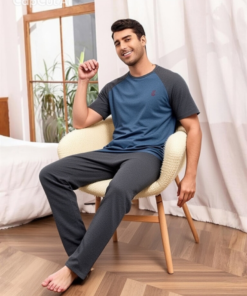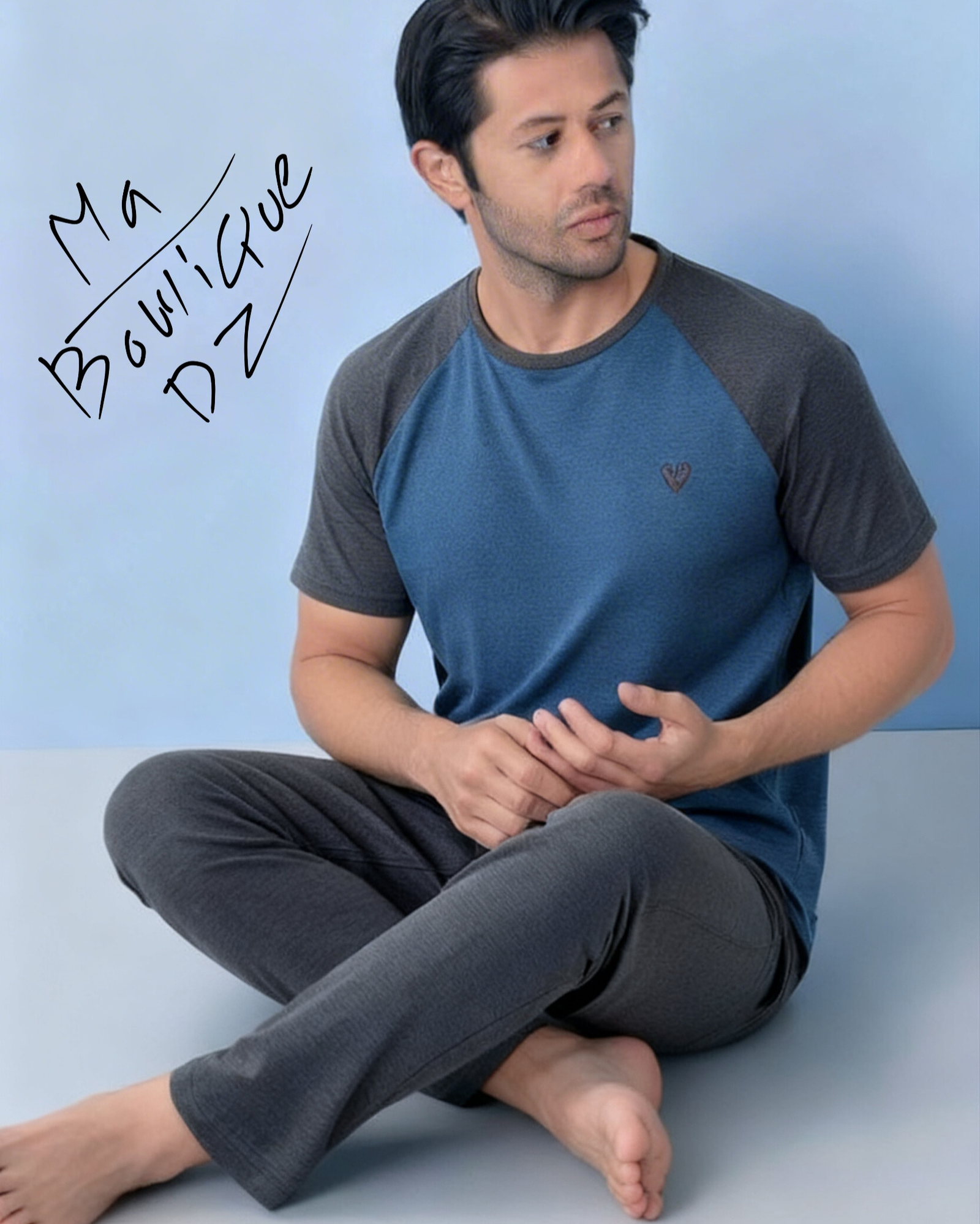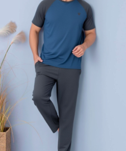 بيجاما رجالية مريحة بتصميم عصري، تتكوّن من تي-شيرت بأكمام قصيرة وبنطال بقَصّة مريحة تمنح حرية الحركة. مصنوعة من قماش ناعم على البشرة، مثالية للنوم والراحة اليومية. صناعة تركية بجودة عالية وتشطيب متقن.