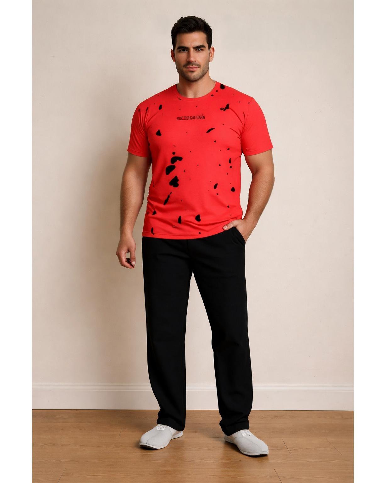 بيجاما رجالية مريحة بتصميم عصري، تتكوّن من تي-شيرت بأكمام قصيرة وبنطال بقَصّة مريحة تمنح حرية الحركة. مصنوعة من قطن ناعم على البشرة، مثالية للنوم والراحة اليومية. صناعة تركية بجودة عالية وتشطيب متقن.