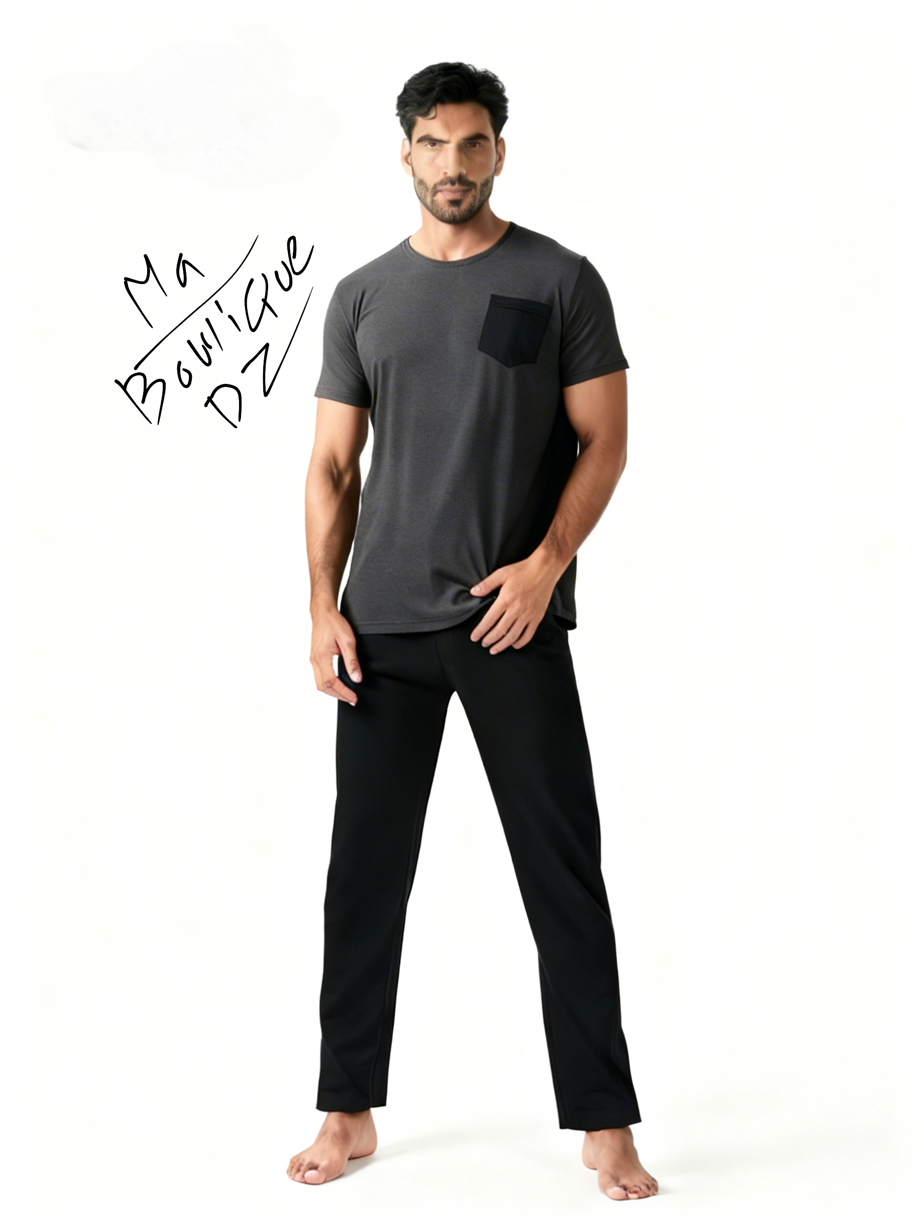 بيجاما رجالية مريحة بتصميم عصري، تتكوّن من تي-شيرت بأكمام قصيرة وبنطال بقَصّة مريحة تمنح حرية الحركة. مصنوعة من قطن 100٪ ناعم على البشرة، مثالية للنوم والراحة اليومية. صناعة تركية بجودة عالية وتشطيب متقن.