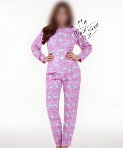 Confectionné dans un tissu doux et léger, cet ensemble comprend un haut à manches longues et un pantalon droit confortable, idéal pour dormir ou au quotidien. Son design jeune et tendance plaira aux fans de dessins animés et de styles mignons.